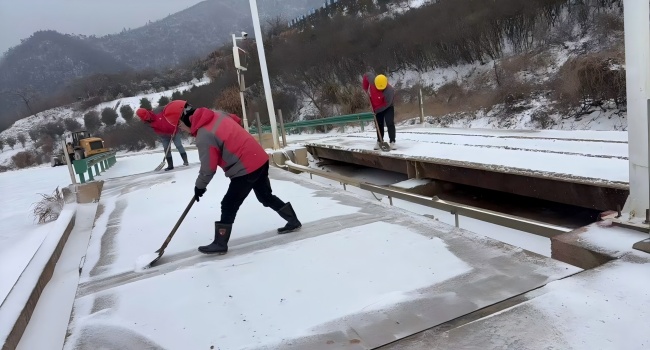 同一时间,杨家矿段也按照集团公司第一季度安委会会议统一要求,迅速启动应急预案,组织各部门投入扫雪除冰工作。重点对机口磅房以下坡道、弯道路面、地磅区域以及进矿道路、办公区与生活区主要通道实施清理。在凛冽寒风中,员工们齐心协力、配合默契,积极投入清雪作业,高效完成责任区域冰雪清除任务。经过两小时连续作业,矿区主要干道及关键区域基本恢复安全通行条件。